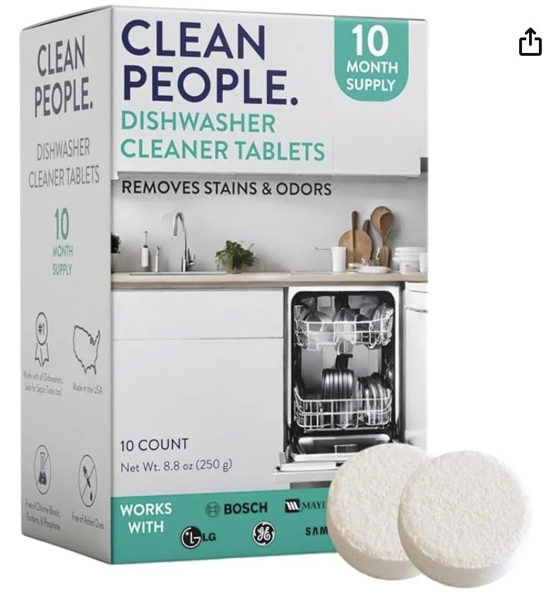 Non toxic dishwasher cleaning tablets. It is recommended to clean your dishwasher once a month.